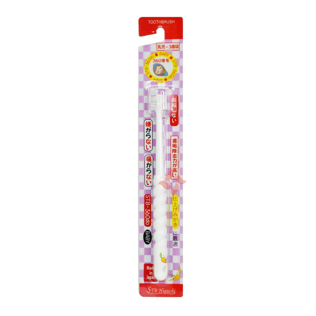 Bàn chải đánh răng 360 độ Higuchi sử dụng lông chỉ tơ tổng hợp cao cấp, mềm mại, giúp chải sạch răng mà không gây tổn thương cho nướu lợi nhạy cảm của bé.