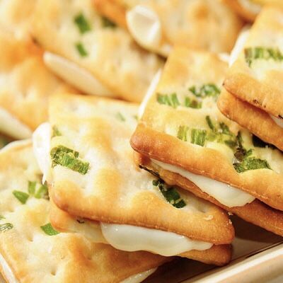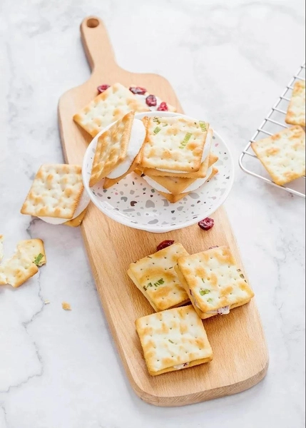 Bánh là sự hoà quyệt tuyệt hảo giữa bánh quy nướng giòn rụm (phủ hành thơm thơm) và nhân sữa bò dẻo dẻo béo ngậy, lớp nhân siêu dày siêu béo tuyệt ngon luôn. Đảm bảo sẽ gây nghiện bạn ngay từ miếng cắn đầu tiên