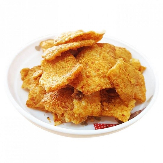 Cơm cháy được ép thành những miếng mỏng được phủ bên trên lớp chà bông mặn mặn, ngọt ngọt, giòn giòn. Các hương vị hòa quyện vào nhau tạo nên hương vị thơm ngon mới lạ khó quên.