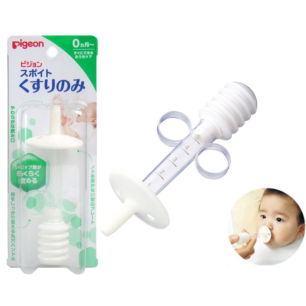 - Phần miếng chắn hình tròn ngăn không có đầu bơm thuốc thọc sâu vào miệng bé.