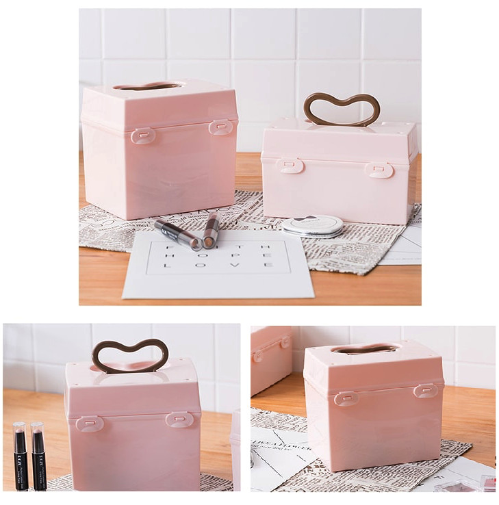 Công Dụng: Dùng để chứa đựng các đồ dùng/ vật dụng phục vụ cho việc trang điểm/ make up rất tiện dụng khi di chuyển. Hộp Thiết kế có quai xách & khóa gài nên rất chắc chắn, an toàn