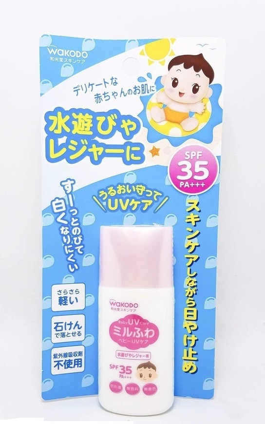 Kem chống nắng Wakodo cho bé khi đi bơi SPF-35 30g giúp ngăn ngừa các tia cực tím UV có thể tạo ra các đột biến di truyền hay khiến thay đổi nội sắc tố của trẻ nếu không sử dụng sản phẩm chống nắng. Ngoài ra Wakodo còn bảo vệ làn da của bé tránh khỏi dị ứng cho da, với thành phần từ sữa mẹ cho da bé luôn được giữ ẩm cả ngày.