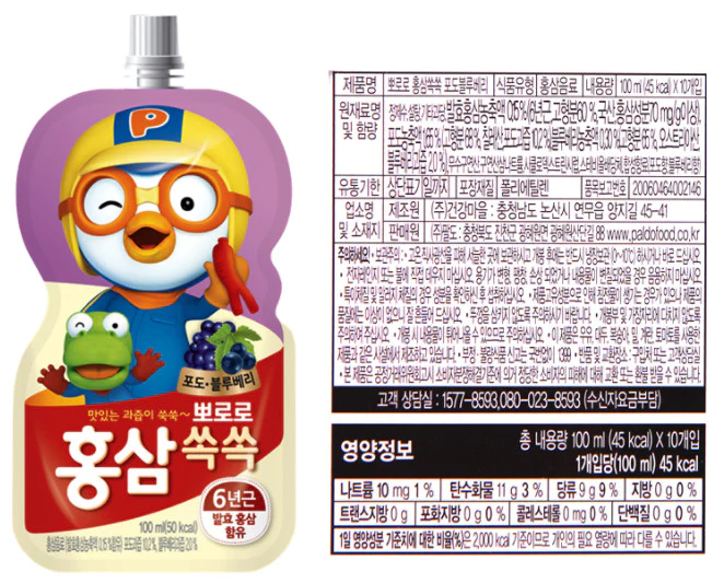 Pororo Hồng Sâm là một loại nước hồng sâm 60% nguyên chất được chiết xuất từ củ sâm 6 năm tuổi và đã được lên men để giảm bớt vị đắng, còn lại 40% là nước ép trái cây tự nhiên kết hợp lại tạo nên một loại thức uống vừa giải khát và còn bổ sung các vitamin cần thết cho các bé.