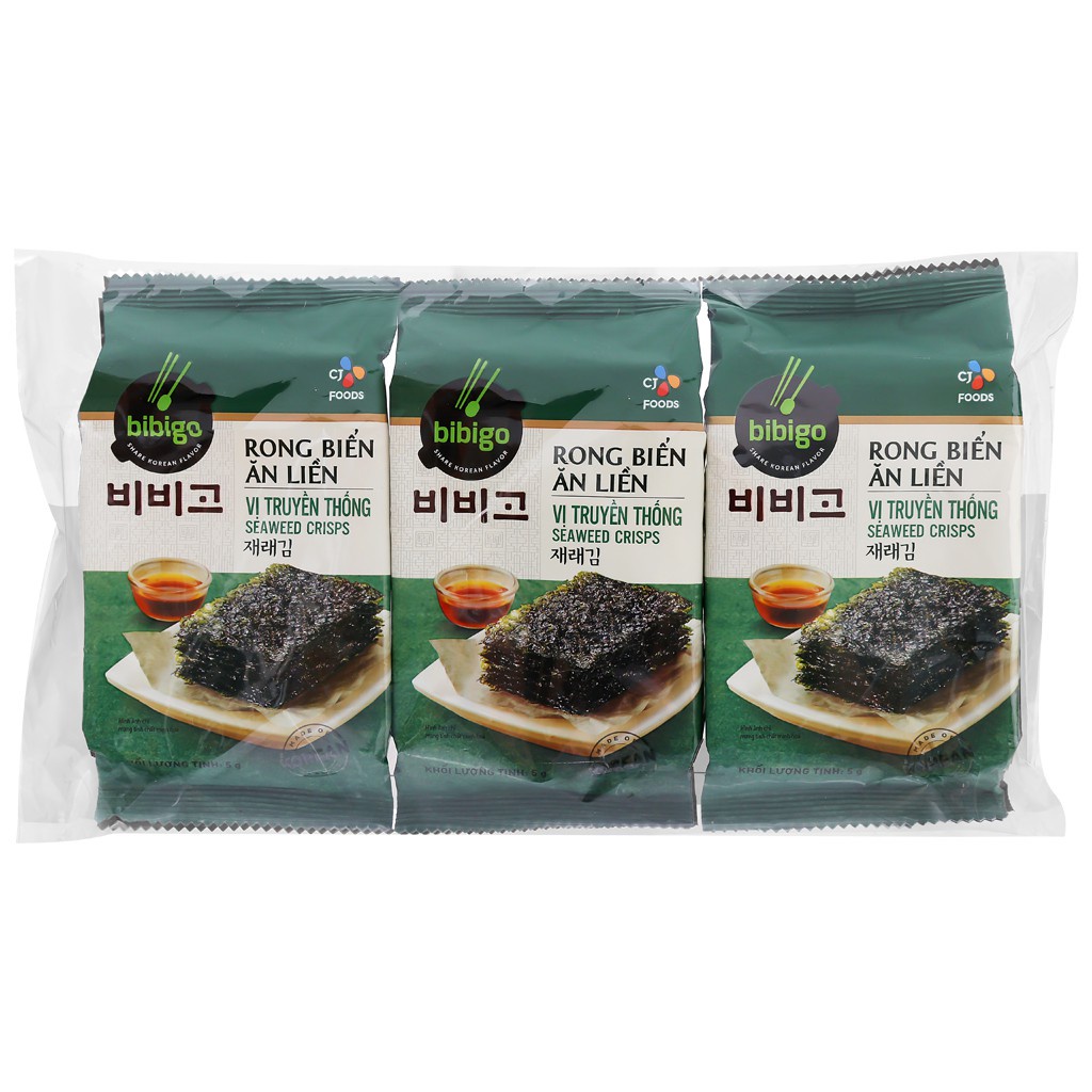 Rong biển ăn liền Bibigo vị truyền thống (Lốc 3 gói - 12gr) được làm từ rong biển ướp tẩm sấy giòn vừa miệng, hương vị thơm ngon từ rong biển. Rong biển được sấy khô, mằn mặn, giòn và tan ngay trong miệng khi thưởng thức.