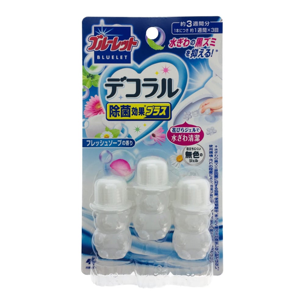 Set 3 lọ gel trang trí và tỏa hương bồn cầu Kobayashi Bluelet giữ cho bồn cầu nhà bạn luôn sạch và lan tỏa mùi hương dễ chịu. Với tác dụng ngăn bụi bẩn bám vào, khử mùi tốt. Sau mỗi lần xả nước thì nước chảy không có màu nhưng vẫn tạo ra mùi thơm.