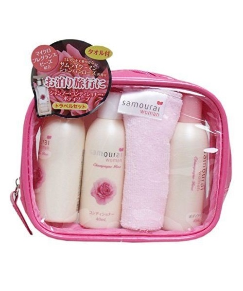 Set du lịch SAMOURAI hương nước hoa (gội, xả, tắm kèm khăn)Túi nhỏ để đựng travel kit, tiện lợi mang theo khi đi du lịch