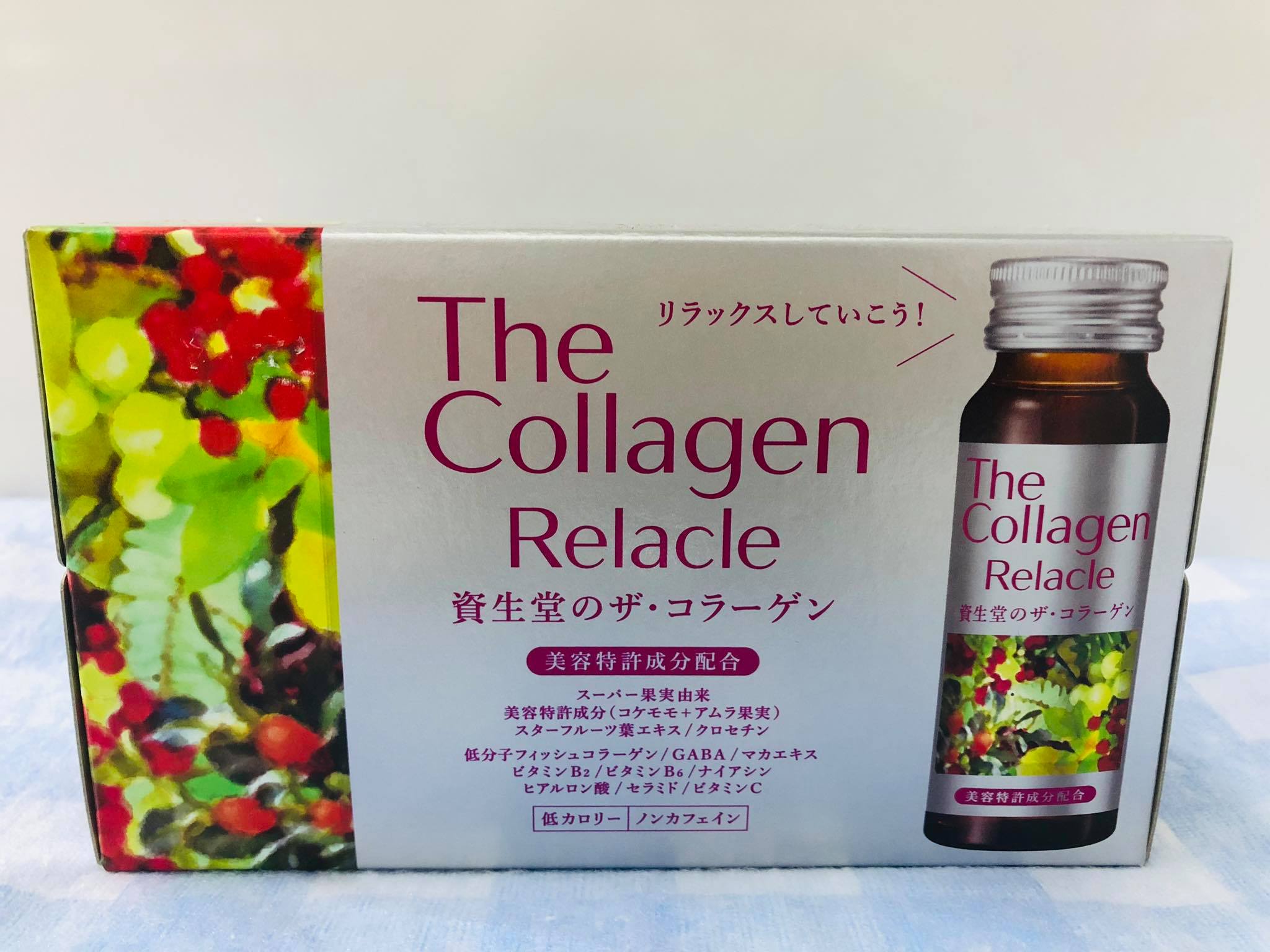 Shiseido The Collagen Relacle 50mlx10 chai là dòng collagen chăm sóc và dưỡng da hiệu quả của hãng chuyên sản xuất mỹ phẩm nổi tiếng Shiseido Nhật Bản. Khác với các sản phẩm khác của hãng, nước uống Collagen Relacle thành phần collagen có bổ sung thêm vitamin C, B và các thành phần thảo dược chiết xuất từ quả khế, Gardenia, dâu tây. Collagen Relacle Shiseido rất thích hợp với phụ nữ trung niên và chị em từ 25 tuổi trở lên, muốn cải thiện “sức sống” cho làn da mỗi ngày.